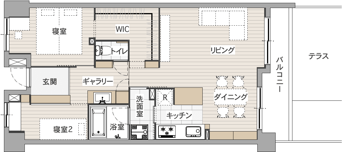 <ご主人> 平米数が限られているので、空間を有効に使う間取りを考えるのは結構悩みました。最初は違うパターンで進めていたんですけど、最後の方で今の形に落ち着きましたね。 <奥様> あとは、本当はもう少し寝室を広くとりたかったけれど、パイプスペースが部屋の中央寄りにあってずらすことができなかったので悩みましたね。 でも、その中でも最大限広いスペースを確保してもらいました。